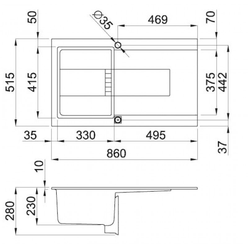 ELLECI SIREX 400 granitový drez, HSB cromo- Rozmer: 860x515x234 mm