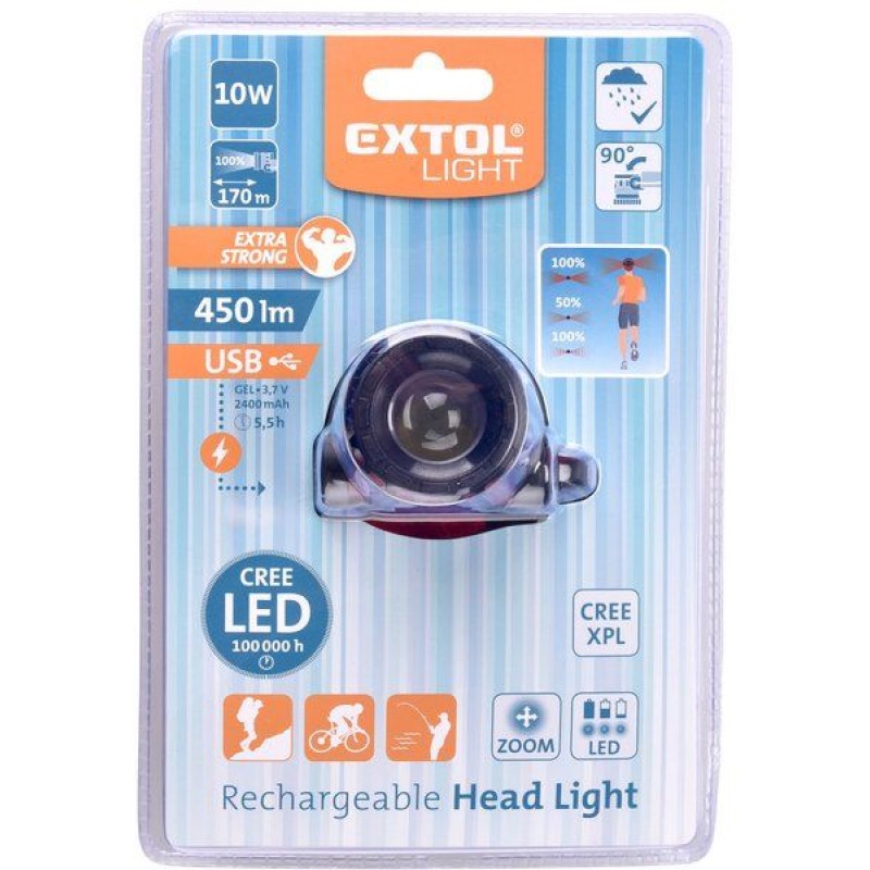 EXTOL LIGHT čelovka 450L CREE XPL, nabíjací, USB, 10W CREE XPL, funkcia ZOOM 43190