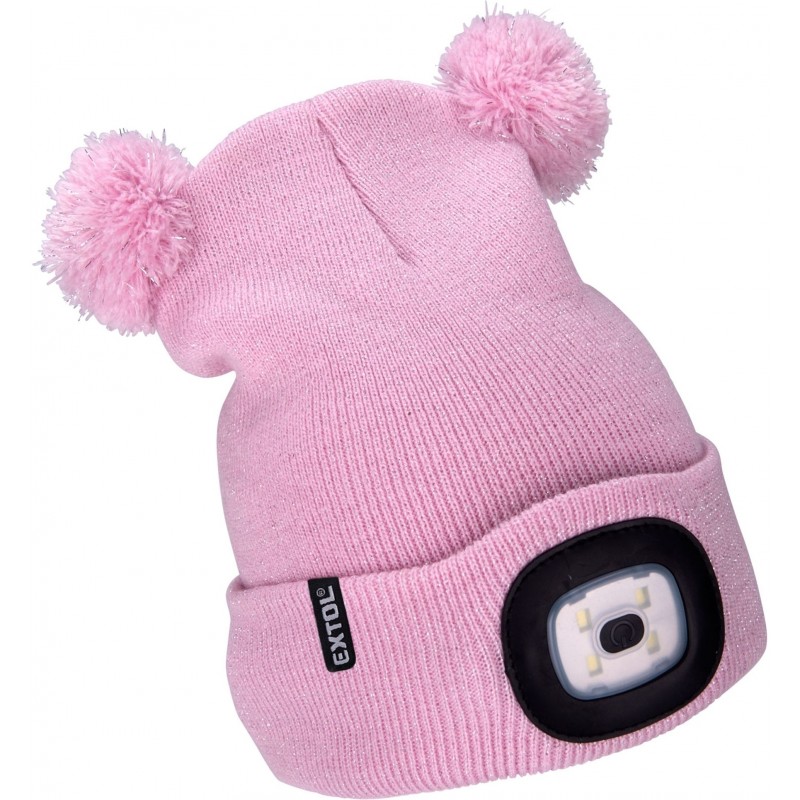 - Magyarországra történő szállítás EXTOL LIGHT sapka fejlámpával 4x25lm, USB töltés,rózsaszín csillámmal és pomponokkal 43458