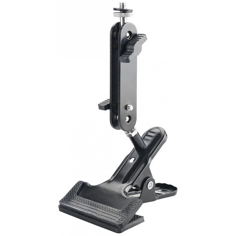 Špeciálny celokovový držiak na laser s klipom. Držiak možno upevniť ku každej podložke alebo konštrukciu do sily 45 mm. Systém dvoch otočných kĺbov umožňuje veľkú variabilitu nastavenia.- Priemer závitu: 1/4 "