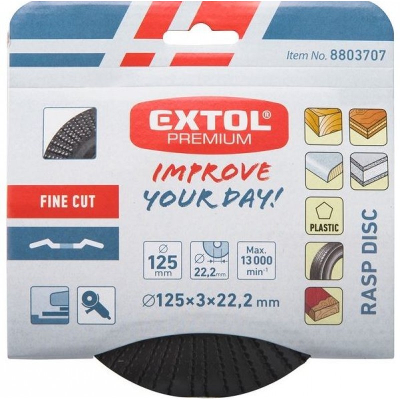 - Pro odeslání do Česka navštivte EXTOL PREMIUM kotouč rašplový na dřevo, 125x3x22,2mm, jemný sek 8803707