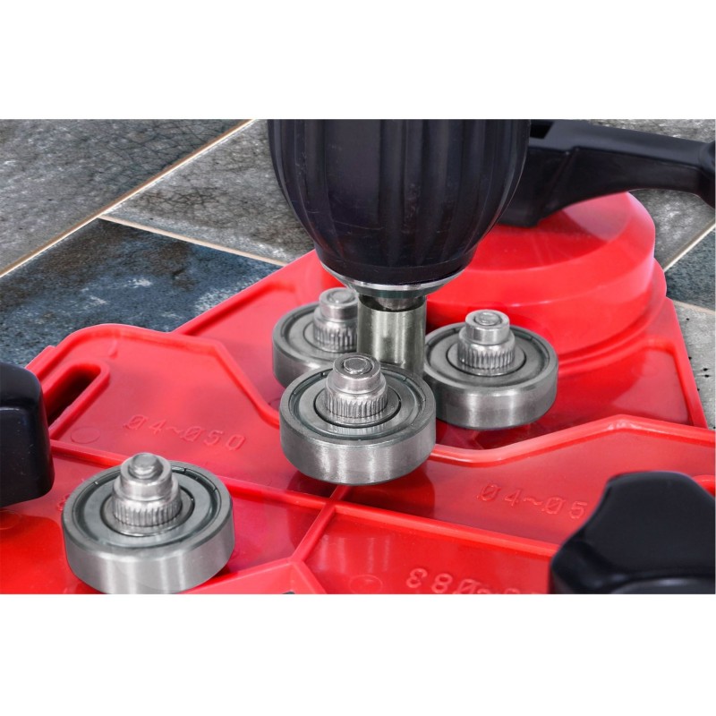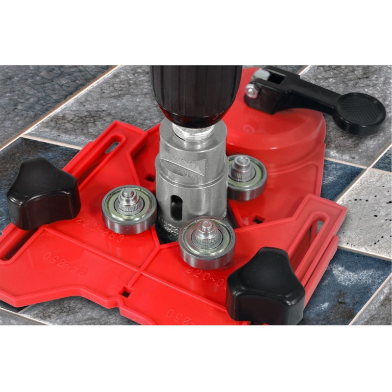 • šablóna z kvalitného ABS plastu je nastaviteľná v rozsahu priemerov 4-83mm a je možné ju použiť na vŕtanie dier do stavebných obkladových materiálov, dlažby, keramiky, skla atď.