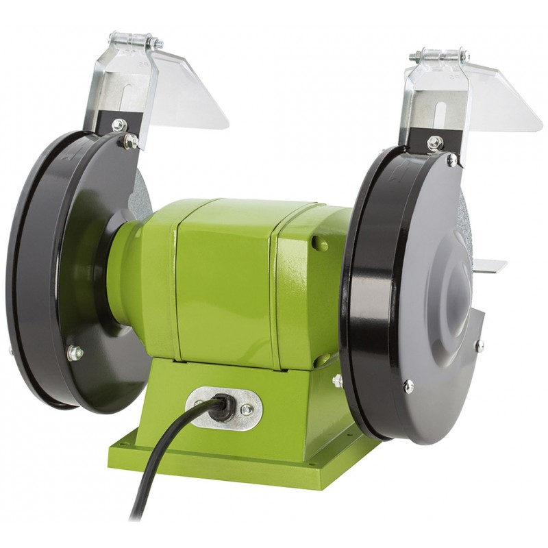 Do každej dielne sa perfektne hodí táto stolová brúska. S 2 dodanými kotúčmi v rôznej zrnitosti zvládne jemnejšie aj hrubšie brúsenie. S vhodným 150mm kotúčom možno aj leštiť alebo precízne ostriť. Oceníte pevnú konštrukciu vďaka hliníkovému podstavci ktorý možno ľahko uchytiť k Vašej pracovnej doske či stola. Každý kutil tiež ocení ochranné kryty cez kotúče pre zaistenie maximálnej bezpečnosti.Kľúčové vlastnosti: