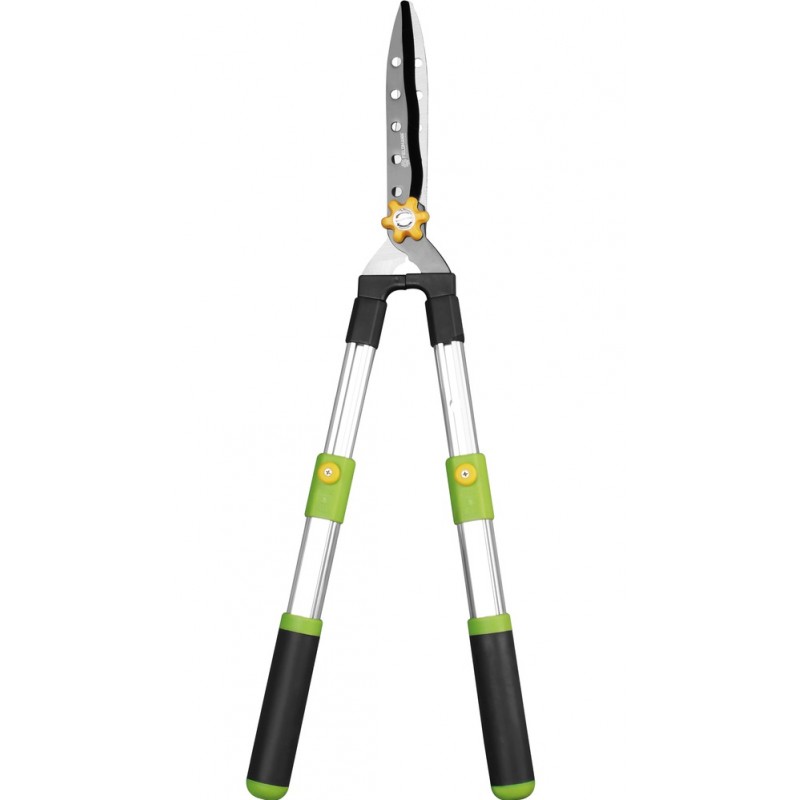 Teleskopické nožnice na živý plot dokážu ustrihnúť vetvy hravo do 5 mm. Komfortu strihanie veľmi pomáha dĺžka nožníc 620 až 820 mm a tiež rukovätiam zo zliatiny hliníka. Ergonomické úchyty s pogumovaným povrchom zaručí neskluznost aj námahou vlhších dlaňou.