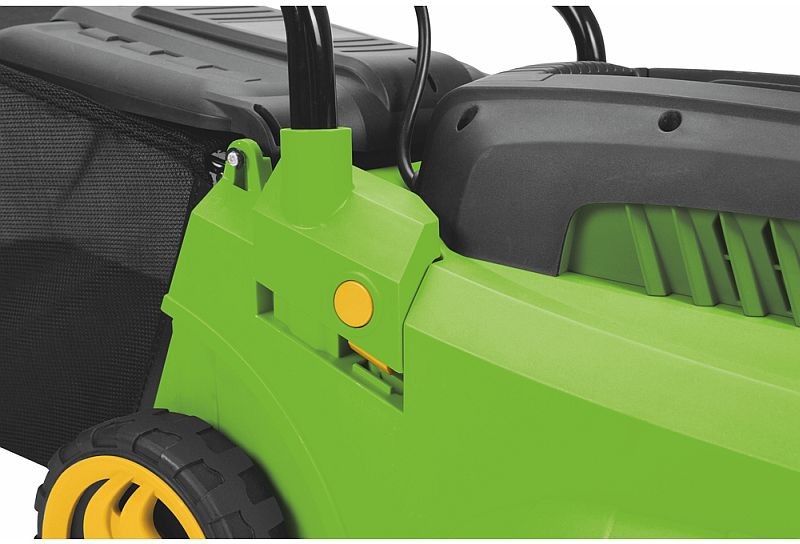 Ľahká, ľahko ovládateľná elektrická kosačka s elektromotorom s príkonom 1 000W a záberom 32 cm.- Výška kosenia je nastaviteľná v 3 polohách.