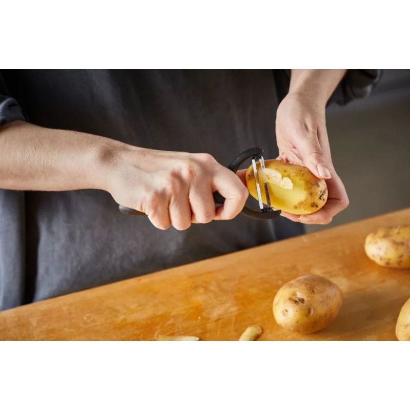 Škrabka na zeleninu Fiskars Essential je praktický kuchynský pomocník pre rýchle a efektívne lúpanie zeleniny. Vďaka ostrej nerezovej čepeli a ergonomickému držadlu ľahko olúpite zemiaky, mrkvu či inú zeleninu s minimálnymi stratami surovín.