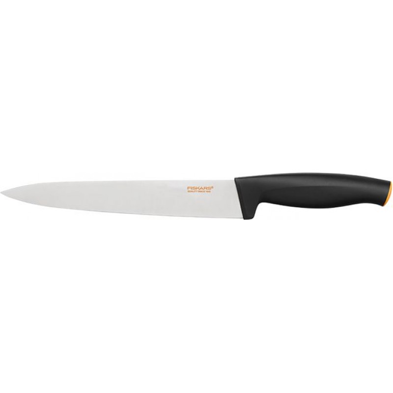 Nôž kuchynský 20 cm Fiskars Functional Form 1014204 GoCuttingVeľký kuchynský nôž na všestranné použitie v kuchyni. Vďaka dlhej užšia čepeli ľahko nakrájate aj najväčšie kusy mäsa.