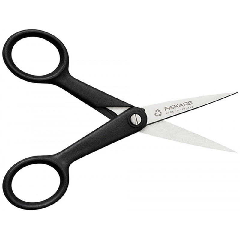 Tieto nožnice Fiskars boli vyrobené z recyklovaných a 100 % recyklovateľných materiálov vo výrobnom závode Fiskars vo fínskom Billnäs. Rukoväte nožníc sú vyrobené z inovatívneho biokompozitného materiálu, ktorý pozostáva zo 62 % recyklovaného plastu po spotrebnom odpade a 38 % celulózových vlákien, čo je udržateľná alternatíva k fosílnym palivám. Samotné čepele sú tiež vyrobené z recyklovanej nehrdzavejúcej ocele. Napriek tomu, že sú nožnice vyrobené z recyklovaných materiálov, sú navrhnuté tak, aby mali rovnakú životnosť ako ktorýkoľvek iný náš výrobok v tejto kategórii.