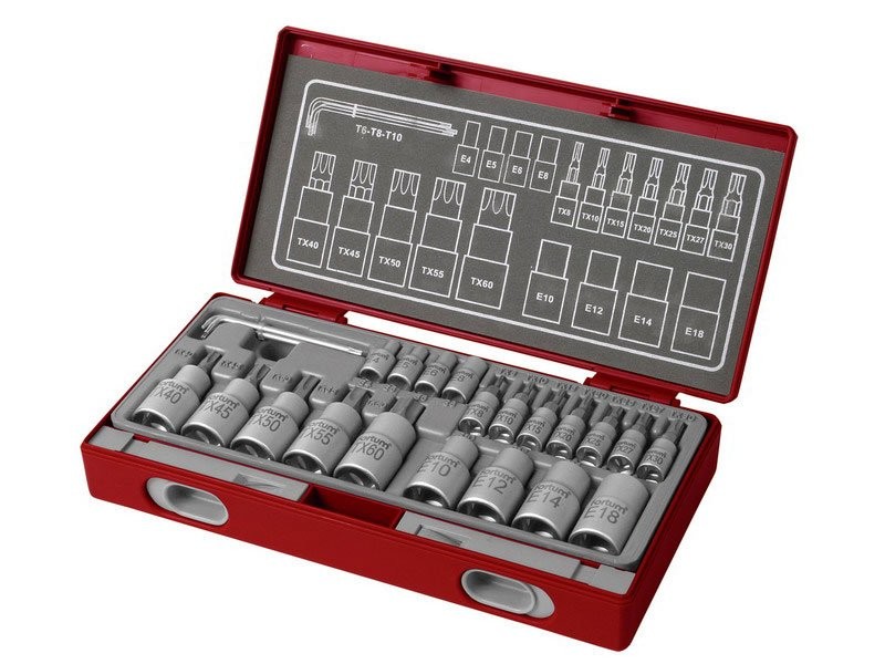 FORTUM kľúče nástrčné a zástrčné TORX, sada 23ks 1/4", 1/2" 4700021