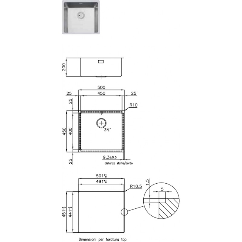FOSTER S4001 nerezový drez, FM 3124 060- Rozmer: 500x450 mm