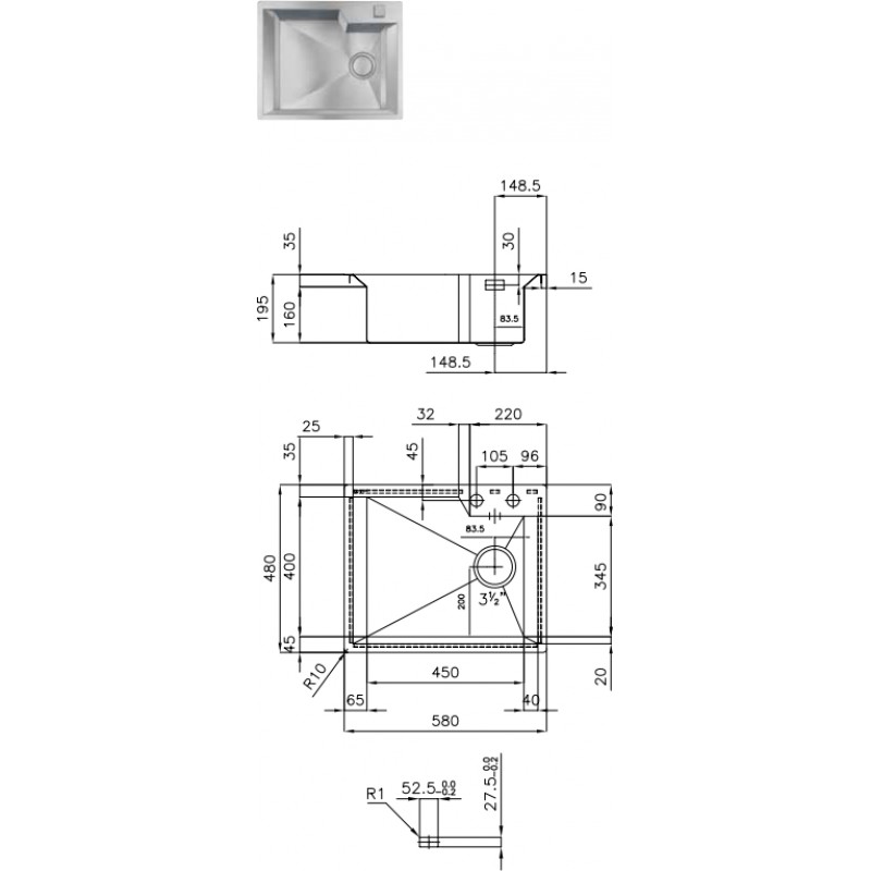 FOSTER Serie GK nerezový drez, FM 1403 000- Rozmer: 580x480x195 mm