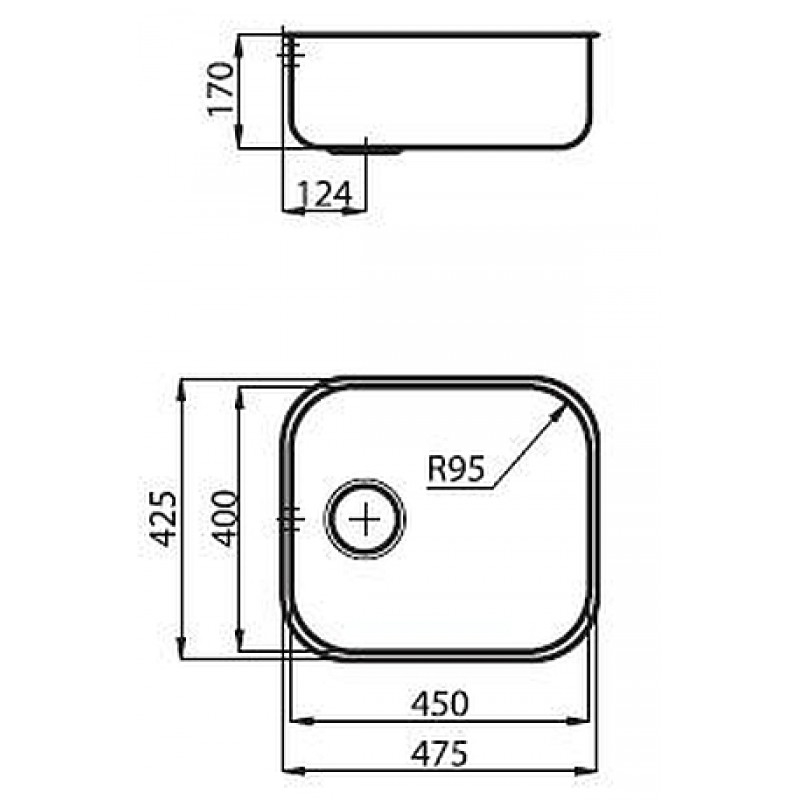 FOSTER série UM nerezový drez, 475x425mm 1811 050- Vnútorné rozmery: 450x400x180 mm