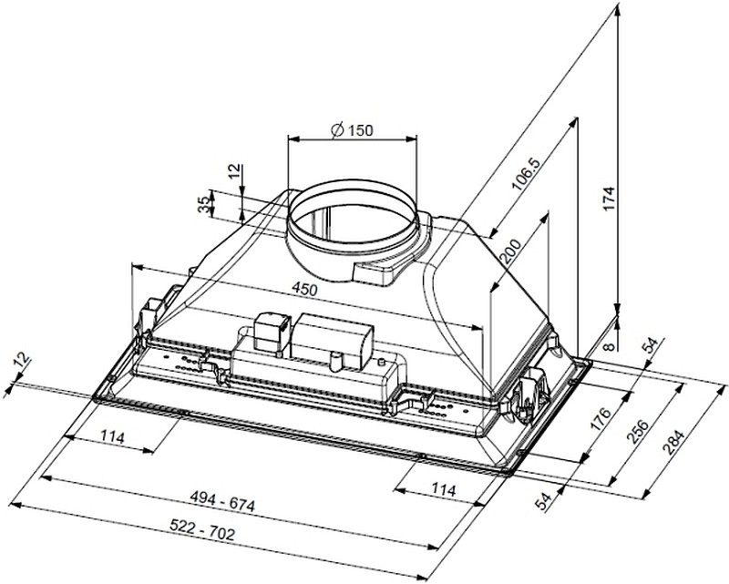 Franke Cappa FBI 522 XS NEW zabudovateľný odsávač pár 110.0200.701Montážna šírka: FBI 522 XS: 52 cm