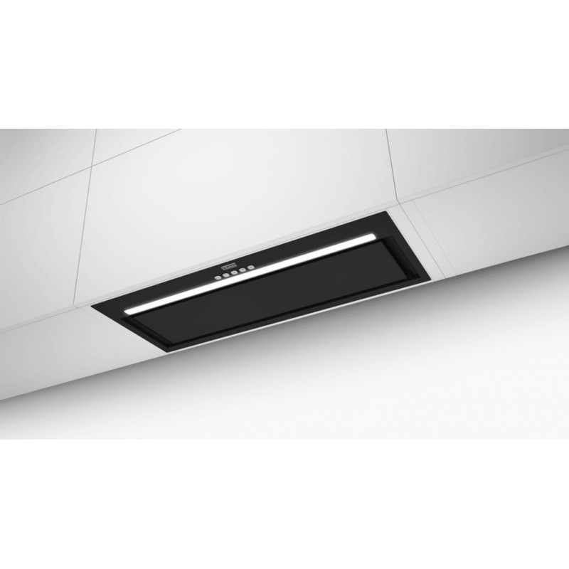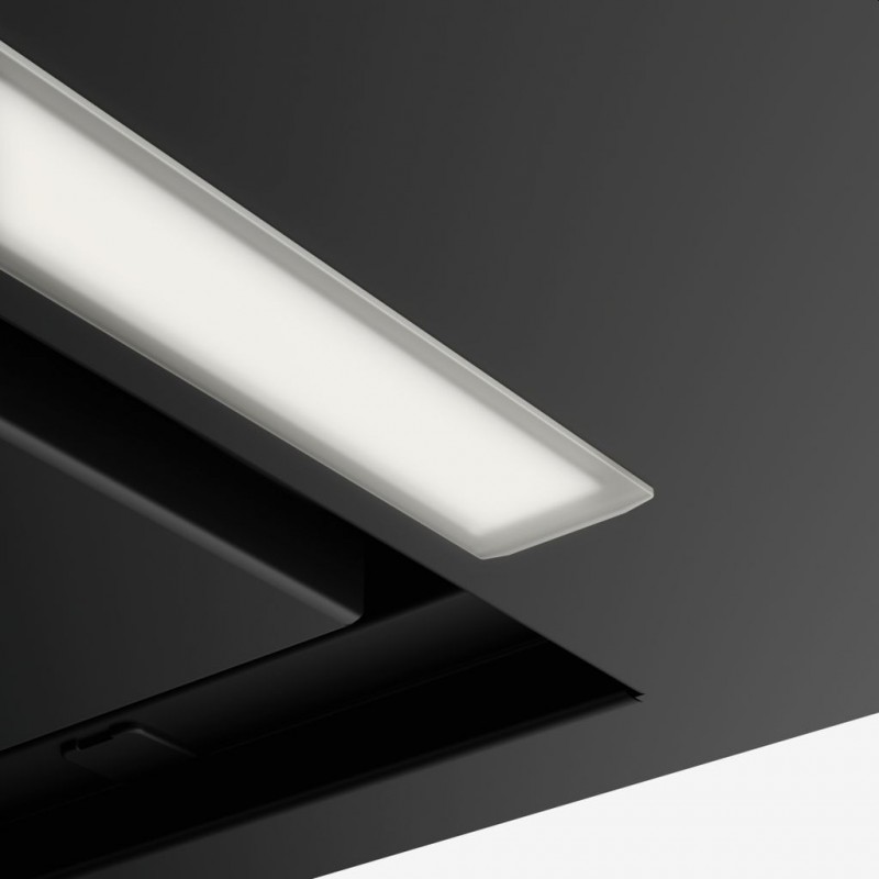 Vstavaný odsávač pár Box Flush Evo. Prevedenie matná čierna (NCS S 9000-N). Energetická trieda B. Tlačidlové ovládanie. Štrbinové odsávanie. 3 Stupne výkonu. Intenzívny stupeň.