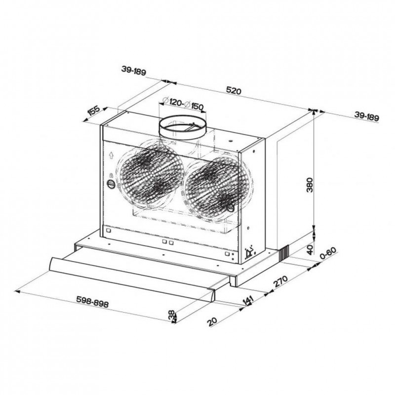 Vstavaný výsuvný odsávač pár Franke OMNIA FTC 622 XS, určený pre vstavanie do skrinky. Odsávač má montážnu šírku 60 cm, 3 stupne výkonu a intenzívny stupeň. Odsávač pár má maximálnu hlučnosť 71 dB a maximálny výkon 645 m3 / h.• Energetická trieda: D