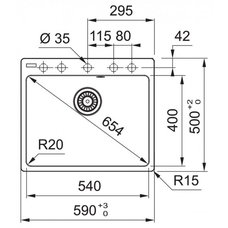 • Výrez: 570 × 480 mm (Rádius 15 mm)