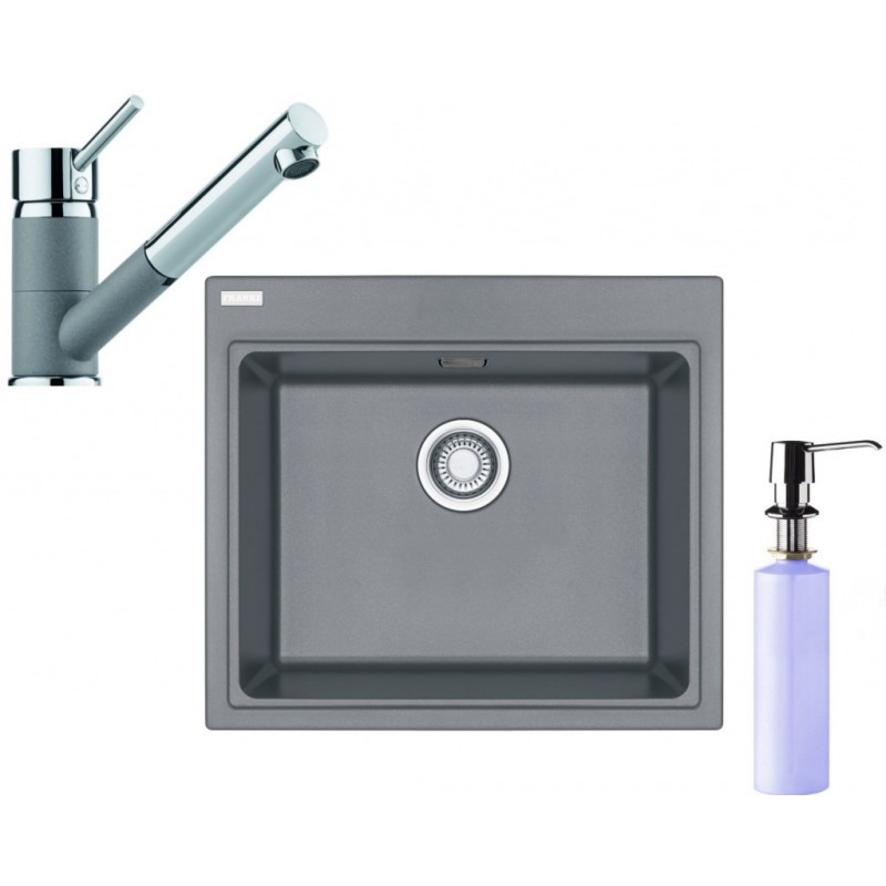 Franke SET G64 granitový drez KSG 238 sivý kameň + batéria FC 7486 sivý kameň + dávkovač