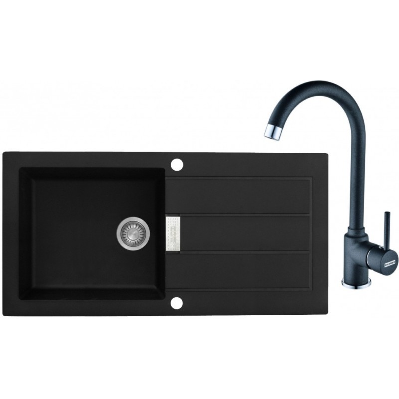 Franke SET T27 tectonitový drez SID 611 čierny + batéria FP 9900 čierna 114.0366.033