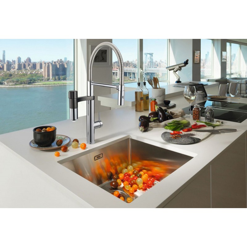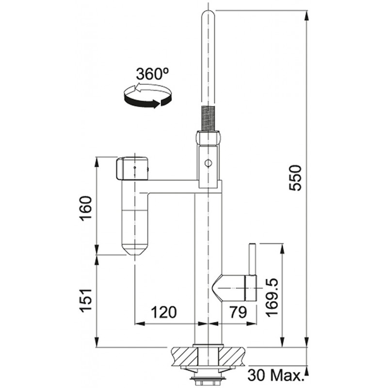 Stojánková tlaková batérie Franke Vital Capsule Filter Tap vo variante so sprchou na pružine. Batéria je otočná o 360 °.Súčasťou batérie je kompletné príslušenstvo k montáži. Nie je potrebné nič dokupovať.