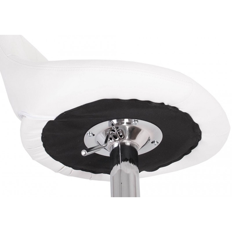 Noha stoličky je vyrobená z pochrómovanej ocele a má pohodlnú opierku na nohy na kruhovom podnoží. Chróm má zrkadlový efekt, ktorý pôsobí veľmi čisto a elegatný.