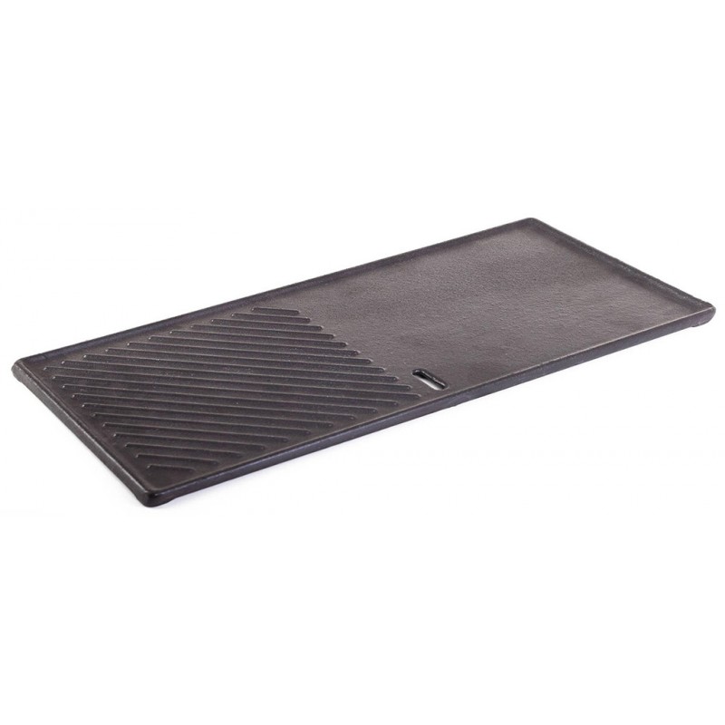Liatina patrí medzi najodolnejšie materiály, ktoré sa pre grilovanie používajú. Je vysoko odolná proti vysokým teplotám a poškriabaniu. Na každej polovici liatinového plátu máte k dispozícii iný druh povrchu. Jedna polovica je hladká a využijete ju predovšetkým pre grilovanie nakrájanej zeleniny, vajíčok a syrov. Druhá polovica s vrúbkami je určená pre správne grilovanie steakov, väčších kusov zeleniny a rýb.