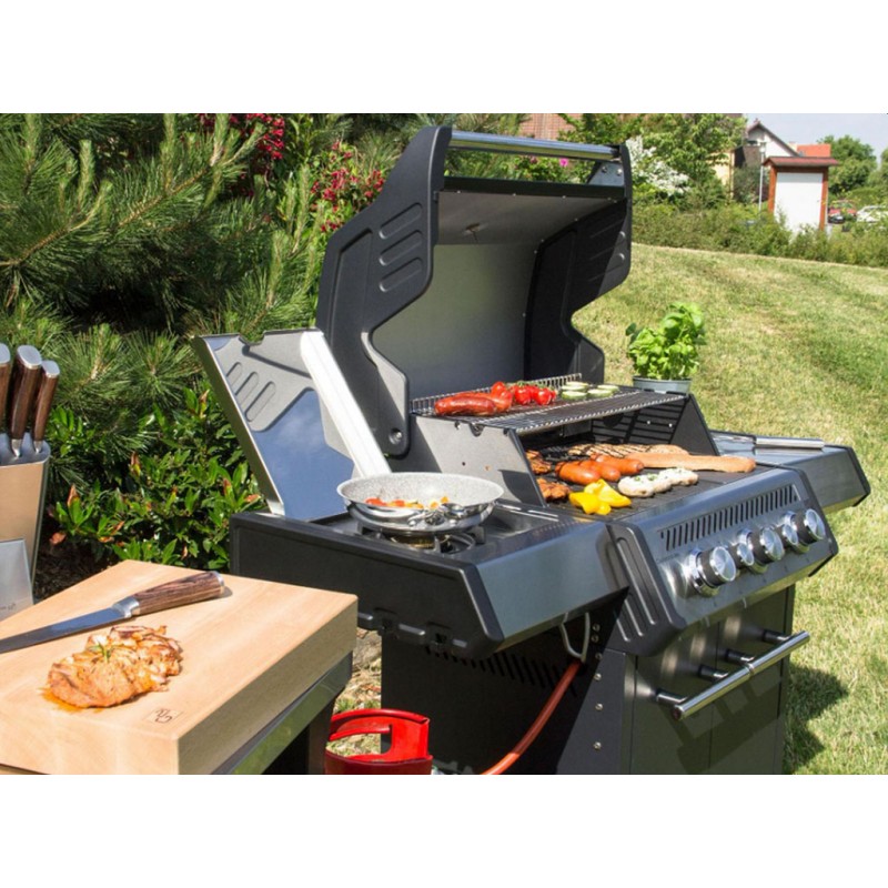 Umiestnenie horáka zaručuje zdravú úpravu pokrmov a na horáku sa nepripaľuje ani tuk alebo šťavy. Teplo totiž prúdi horizontálne a na horák nekvapká mastenec z pečenia. Môžete na ňom ugrilovať vynikajúci steak alebo celé kura. Je výborný aj na grilovanie na grilovacie ihle (dokúpiteľné príslušenstvo). Pokiaľ sa chystáte na dlhšie grilovanie, napríklad kurčiat vcelku, využijete ho naplno a stane sa nepostrádateľným. Výborný je aj na minútky alebo steaky.