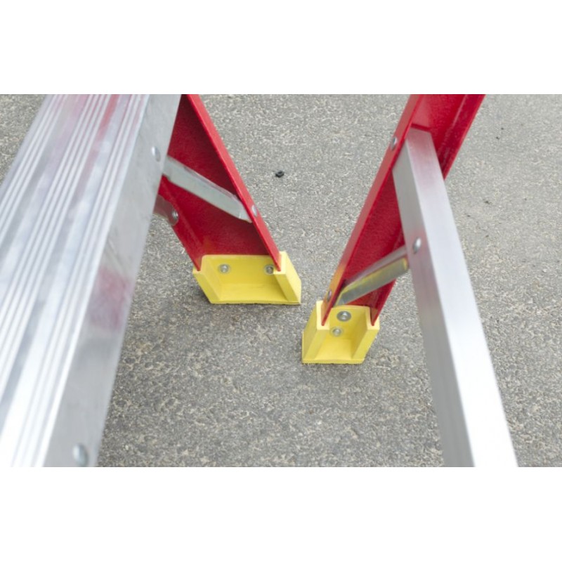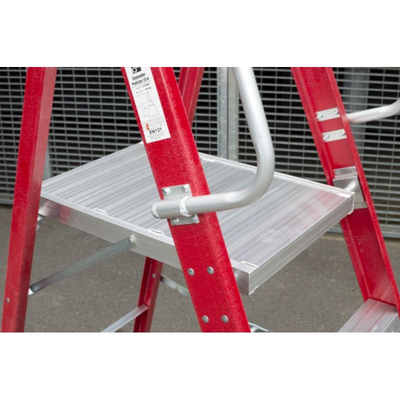 Jednostranné pracovné schodíky G21 ProfiLine sú s obľubou využívané pre montážne práce v rôznych remeselných odvetviach, v upratovacích službách alebo v skladoch.Stabilná konštrukcia schodíkov s hmotnosťou 15,2 kg je vysoká 233 cm s 4 nášľapnými stupňami a plošinou vo výške 141 cm. Bočnice sú vyrobené z kvalitného sklolaminátu, ktorý je odolný proti poveternostným vplyvom, korózii a je štrukturálne stály. Na bočniciach sú umiestnené pevné istiace držadlá pre ľahký výstup a státie pri práci.