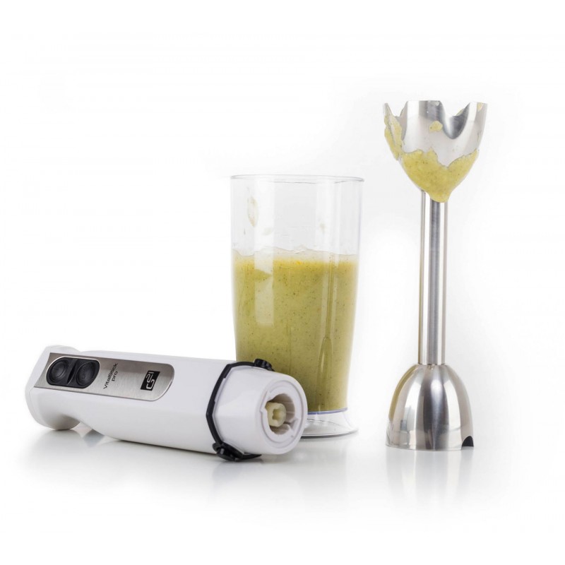 Tyčový mixér VitalStick Pro s neuveriteľným výkonom 1 000 W, krásne tichým chodom, unikátne zostavenými nožmi, extra odolným celokovovým telom a bohatým príslušenstvom vám ako novinku predstavujeme práve teraz. V čom je ešte výnimočný?Výkon, ktorý zvládne všetko