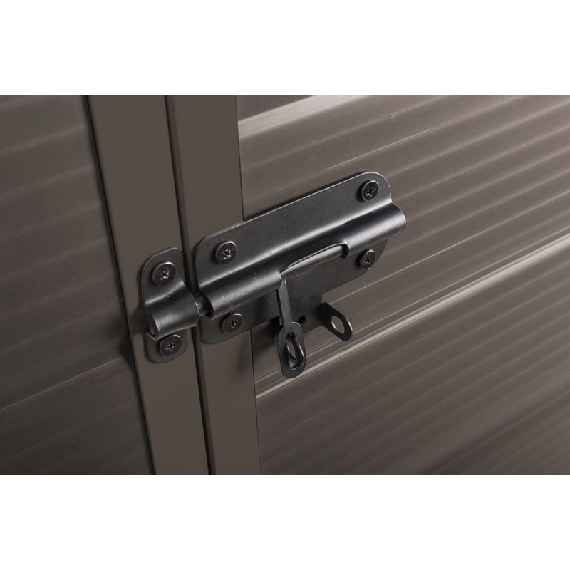 Nad dvojkrídlovými dverami je umiestnená ventilačná mriežka, ktorá zabezpečuje dostatočné odvetrávanie a cirkuláciu vzduchu vo vnútri domčeka. Preto sa nemusíte báť plesní alebo zrážanie vody na stenách v prípade náhlych zmien teploty.