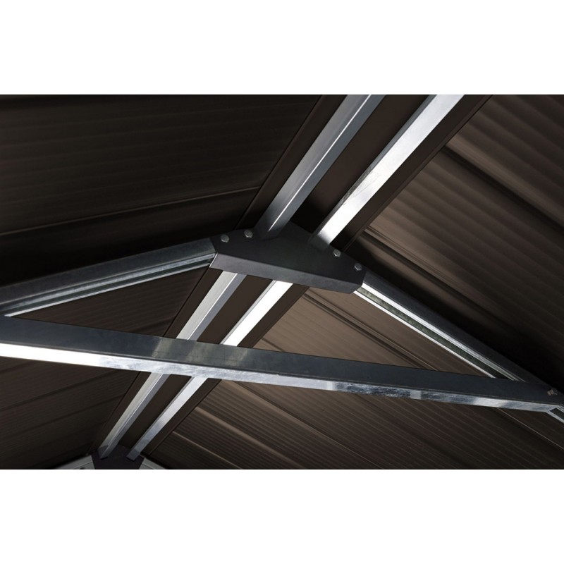 Konštrukcia záhradného domčeka G21 sa skladá zo základne z nerezového plechu, nerezové výstuhy strechy, plastových stĺpikov o hrúbke materiálu 1,5 mm a vonkajších panelov o sile 12 mm. Panely sú vyrobené zo sendvičového tvrdeného plastu. Strecha záhradného domčeka je skonštruovaná tak, aby vydržala zaťaženie až 60 kg / m2. Na prednej strane domčeku sú umiestnené dvojkrídlové dvere so šírkou 151 cm a výškou 183 cm, ktoré zaisťujú jednoduchý prístup.
