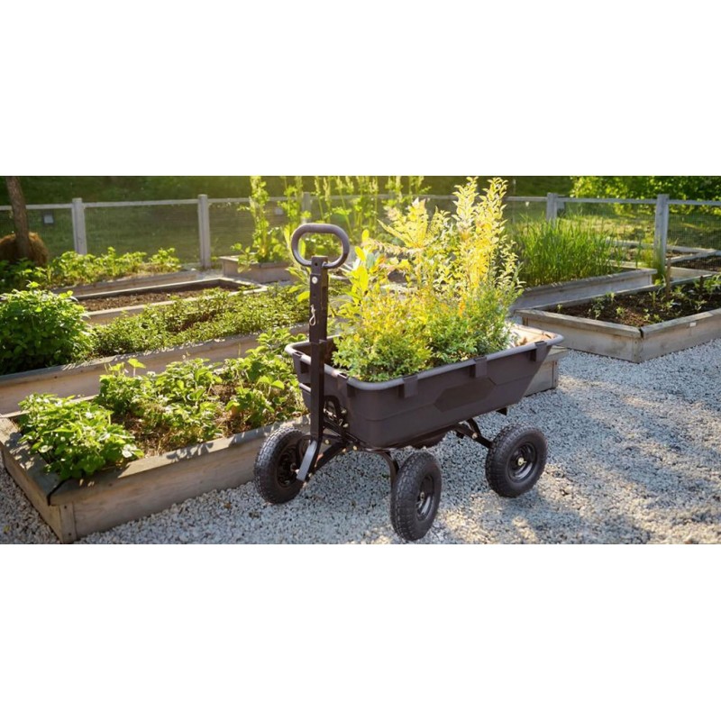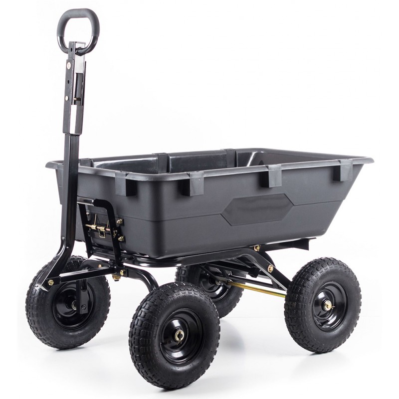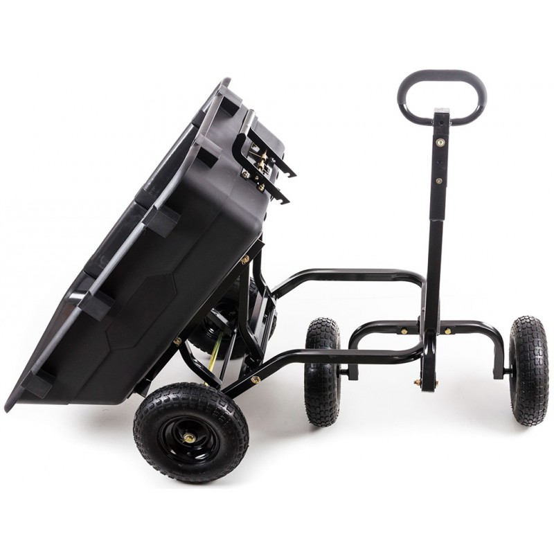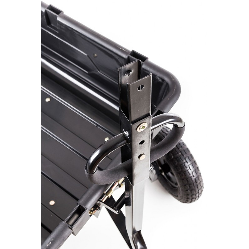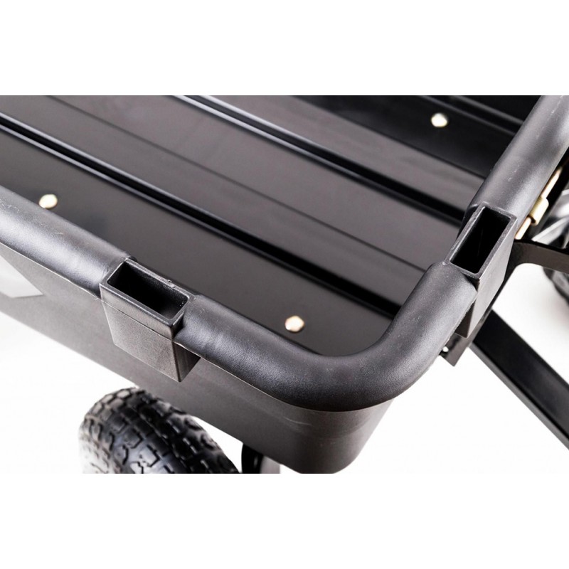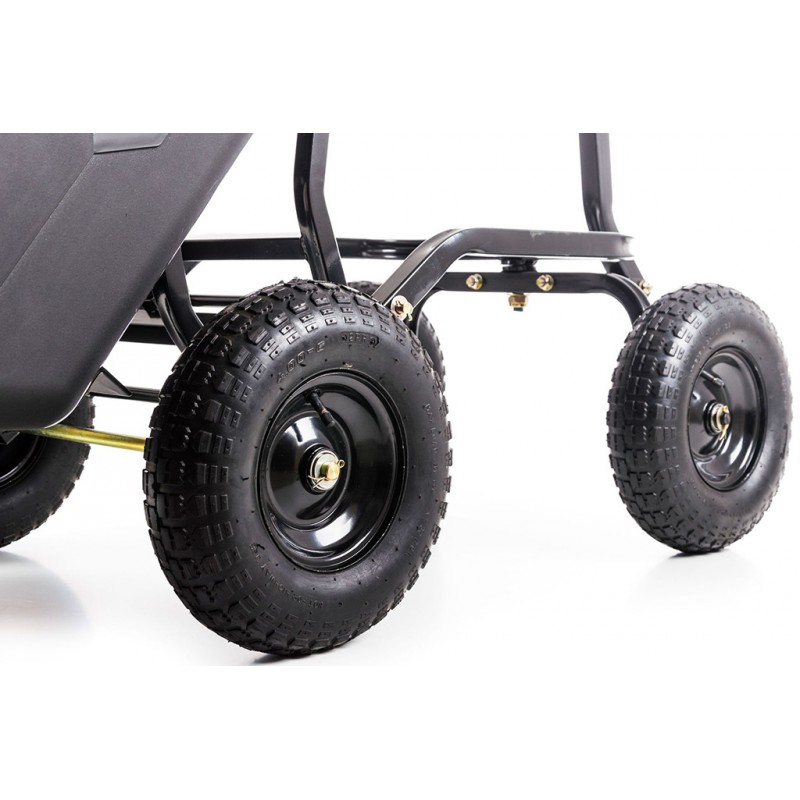 Záhradný vozík G21 GA 120 má praktickú sklápaciu nepriepustnú korbu s objemom 120 l, nosnosť 600 kg a 4 nafukovacie kolesá na dvoch nápravách, z ktorých jedna je riadiaca. Vozík sa vďaka tomu ľahko ovláda a veľmi ľahko a pohodlne sa s ním manipuluje.