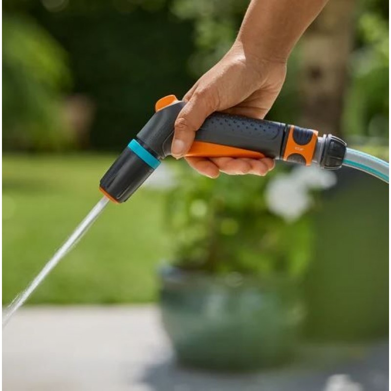 Čistiaci postrekovač Classic od spoločnosti GARDENA je navrhnutý na všestranné čistenie a zavlažovanie počas záhradnej sezóny. Vďaka dvom univerzálnym režimom postreku je ideálny na zavlažovanie záhonov aj na čistenie terás, chodníkov či záhradného nábytku.