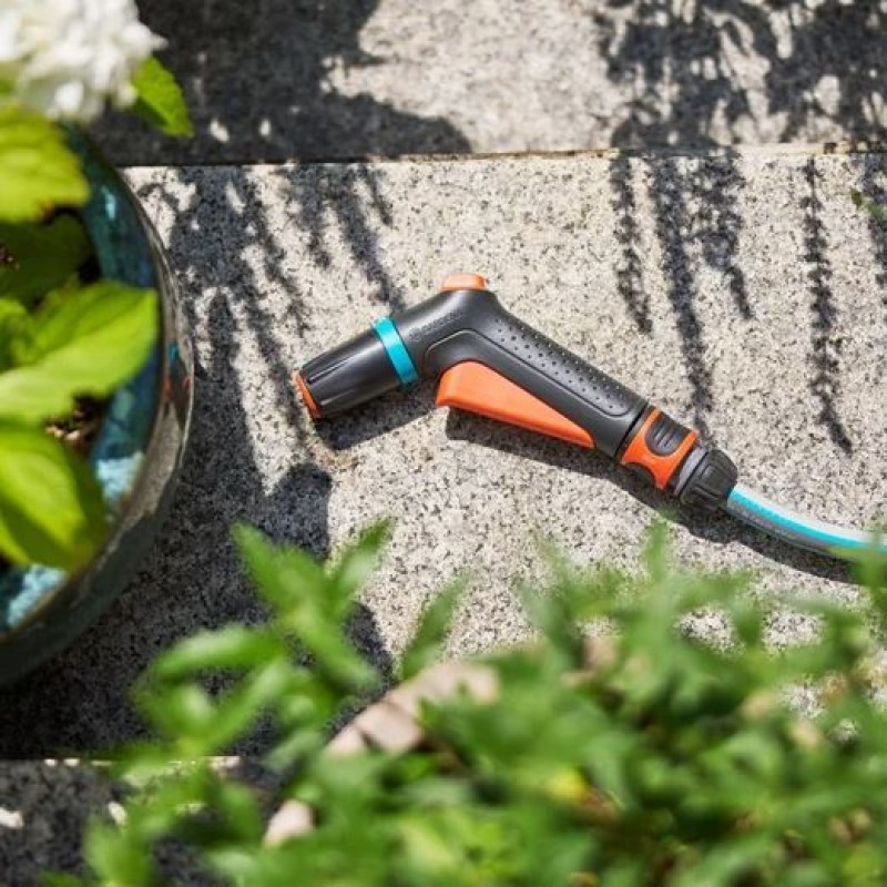 Čistiaci postrekovač Classic so stopspojkou GARDENA je praktickým riešením pre zavlažovanie aj čistenie záhrady. Automatická aretácia spúšte zabezpečuje pohodlné používanie bez únavy rúk.