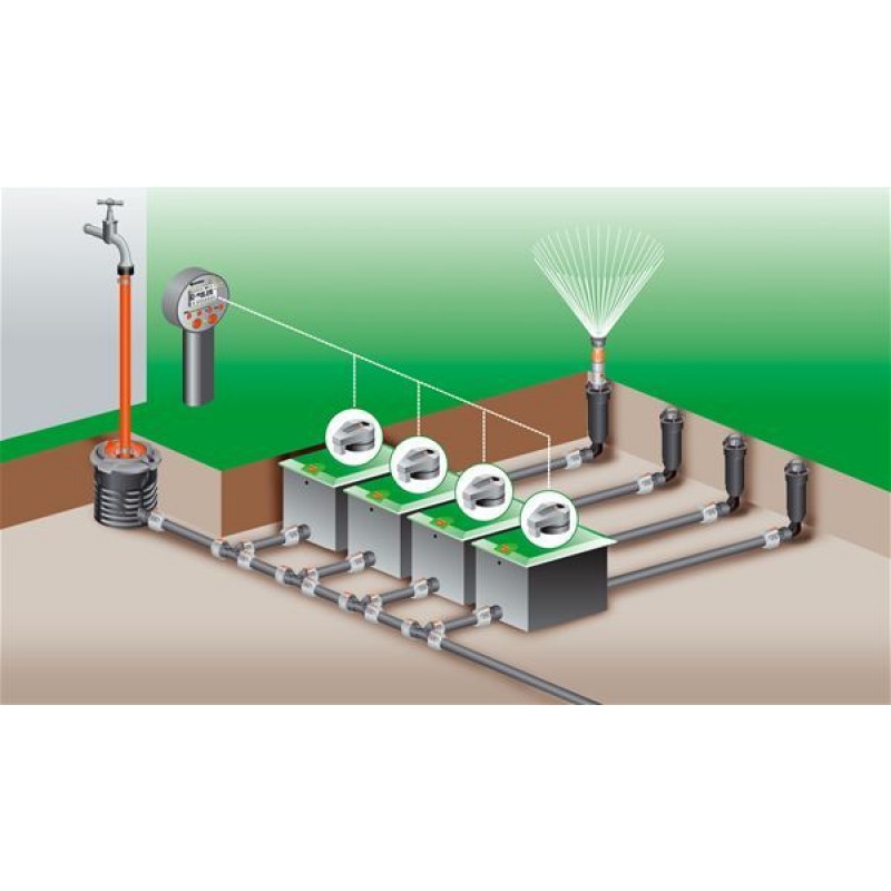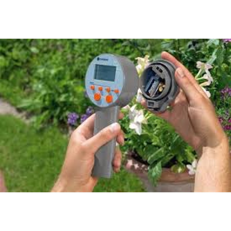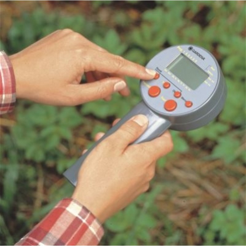 Programovacia jednotka od spoločnosti GARDENA slúži na automatické riadenie systémov pre riadenie zavlažovania alebo väčších Sprinklersystému a je tak ideálny pre použitie v oblastiach bez prívodu energie. Je ideálny pre prípady, keď nie je dostatočné množstvo vody pre súčasnú prevádzku celého systému - pozostávajúceho z niekoľkých zavlažovacích systémov. Navyše z dôvodu rozdielnych požiadaviek na množstvo vody jednotlivých oblastí s rastlinami riadi programovacie jednotka od spoločnosti GARDENA jednotlivé intervaly zavlažovania pre jedno potrubie a umožňuje tak samostatné a optimálne zavlažovanie. Programovacia jednotka od spoločnosti GARDENA slúži na programovanie riadiacej jednotky od spoločnosti GARDENA (kat. Č. 1250). Prenos dát do riadiacej jednotky sa vykonáva jednoducho stlačením tlačidla. Po skončení programovania je riadiaca jednotka namontovaná na zavlažovacie ventily 9 V od spoločnosti GARDENA (kat. Č. 1251-20) a riadi ich na základe nastavených časov. Pre jeden deň možno vybrať až šesť zavlažovacích aktivít. Dni a cykly zavlažovania sú programovateľné samostatne. Dĺžku zavlažovania možno flexibilne nastaviť medzi jednou minútou a 9 hodinami 59 minútami. Pre prevádzku je potrebná jedna 9V alkalický akumulátor (nie je súčasťou dodávky). Tým je zaistená bezpečná prevádzka po dobu približne jedného roka.parametre:
