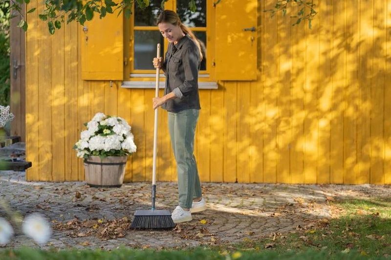 Na udržiavanie čistoty povrchov je metla na terasy GARDENA PureLine praktickým pomocníkom. Je vybavená vysoko elastickými plastovými štetinami a je navrhnutá na účinné zametanie nečistôt na terasách a menších plochách.