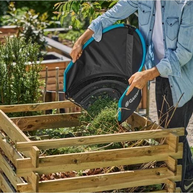 Pevná konštrukcia zabezpečuje stabilitu pri manipulácii a umožňuje jednoduché vysypanie bez rozsypania obsahu. Kôš možno po odobratí použiť aj ako lopatu na záhradný odpad. Po skončení práce ho jednoducho zložíte do kompaktnej veľkosti a pomocou integrovaného háku zavesíte pre úsporné skladovanie.
