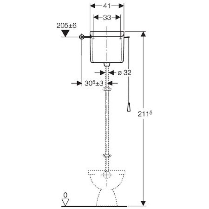 Geberit AP123 AP123 Vysokopoložená splachovacia nádržka na omietku, s retiazkou, alpská bielaPre montáž na omietku.