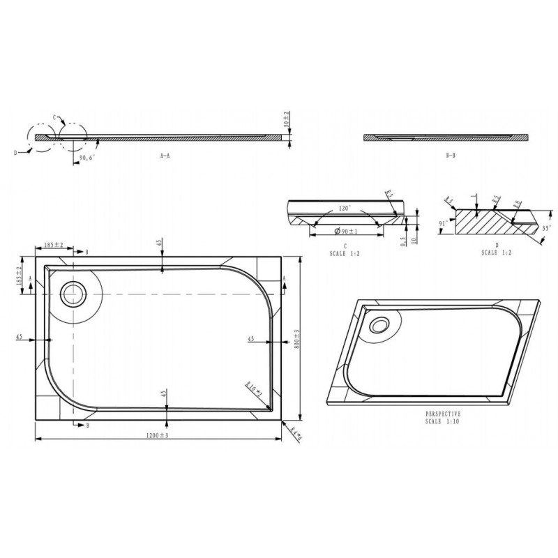 Sprchová vanička z liateho mramoru 1200x800mm, obdĺžnik