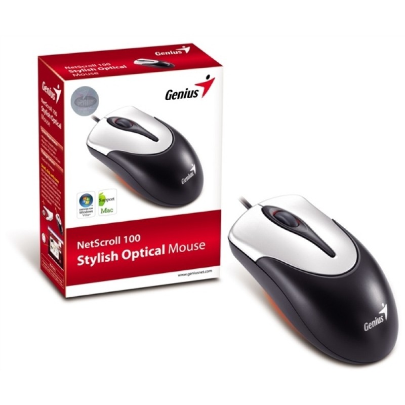 Najnovšie optická myš spoločnosti Genius - NetScroll 100 zaiste dodá štýlový vzhľad každému počítaču a skvele sadne do ruky praváka či ľaváka. NetScroll 100 to je geniálny kvalita-v štýlovej striebornej farbe - a za prijateľnú cene