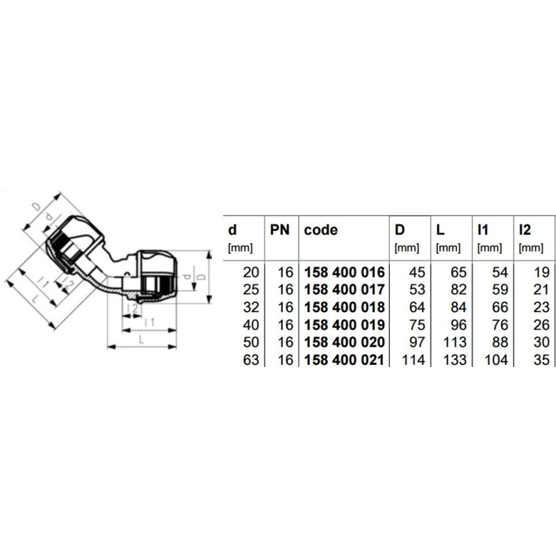 GEORG FISCHER iJOINT Polypropylénové koleno 45°/50, 158-400-020