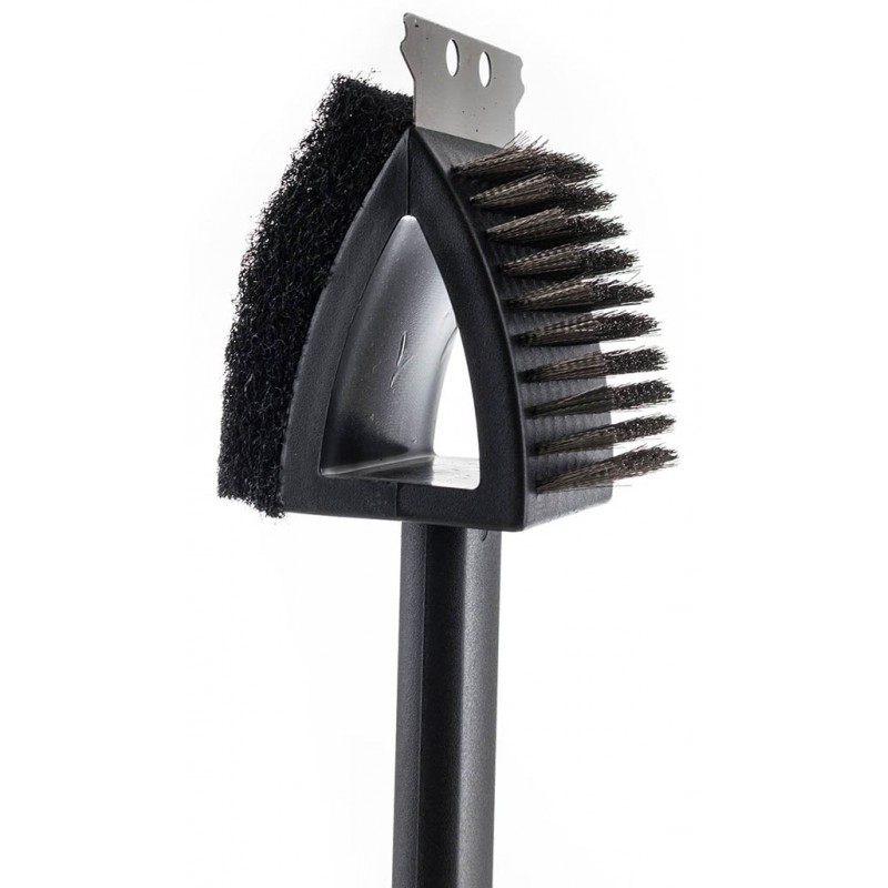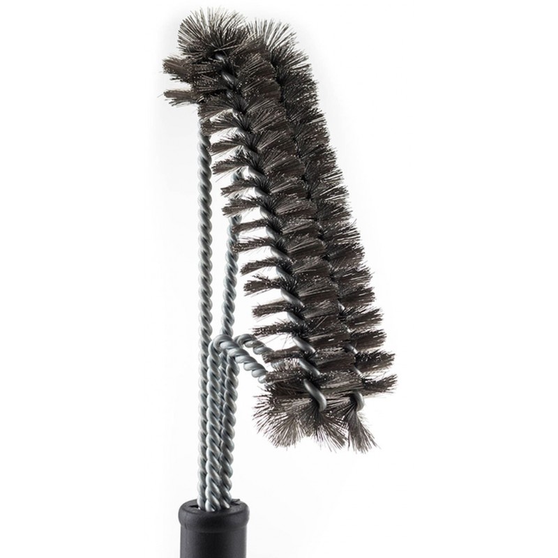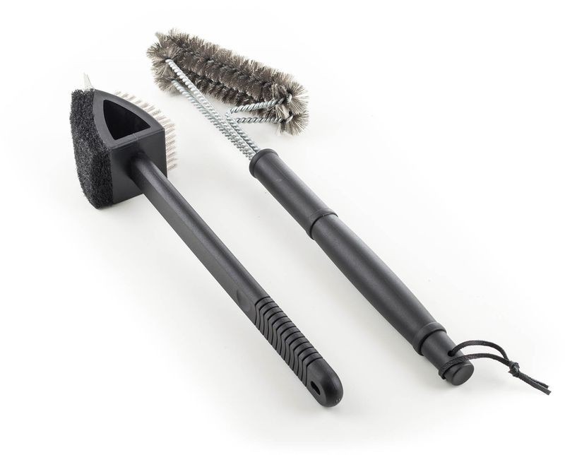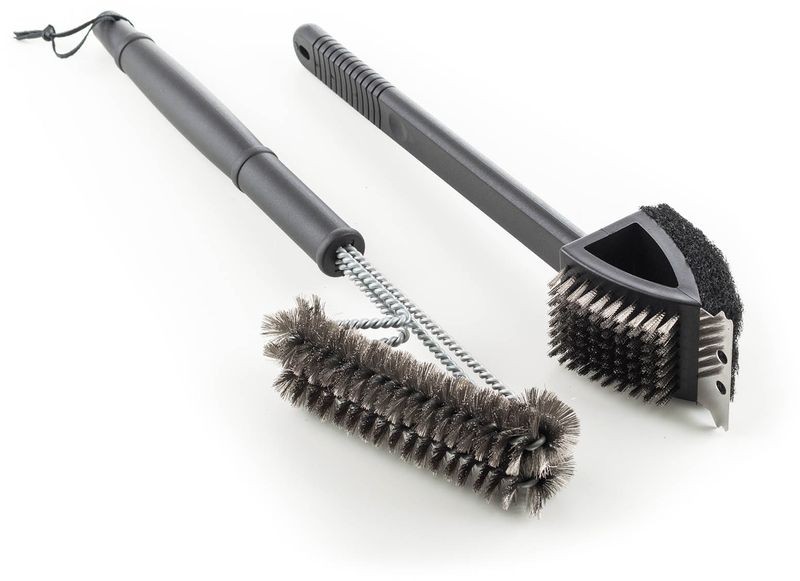 Set sa skladá z dvoch kusov náčinia. Na jednej rukoväti je umiestnený plochý drôtenú kefu, obdĺžniková drôtenka a kovová škrabka. Táto časť setu je určená prevažne pre údržbu grilovacieho liatinového plátu a kameňa. Na druhej rukoväte sú nasadené dva oválne drôtené kefy, ktoré vám pomôžu s dôkladným vyčistením grilovacích roštov.