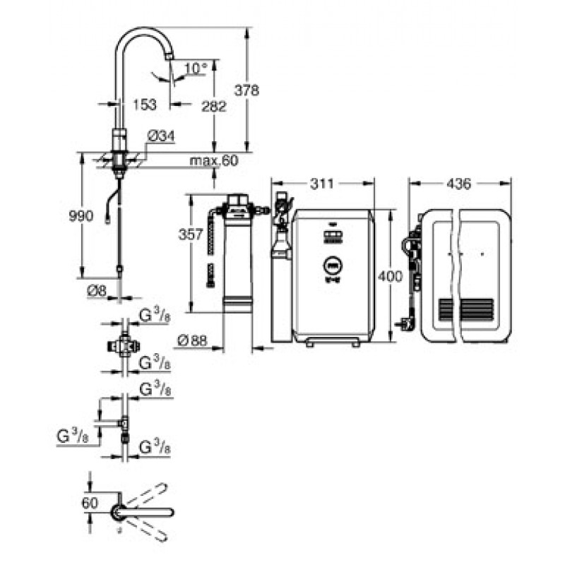 - Pro odeslání do Česka navštivte GROHE Blue-Páková dřezová baterie s filtrem a chladicím zařízením,chrom 31302001