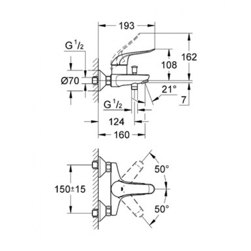 GROHE Euroeco Special páková vaňová batéria, DN 15, chróm 32783000- Nástenná montáž