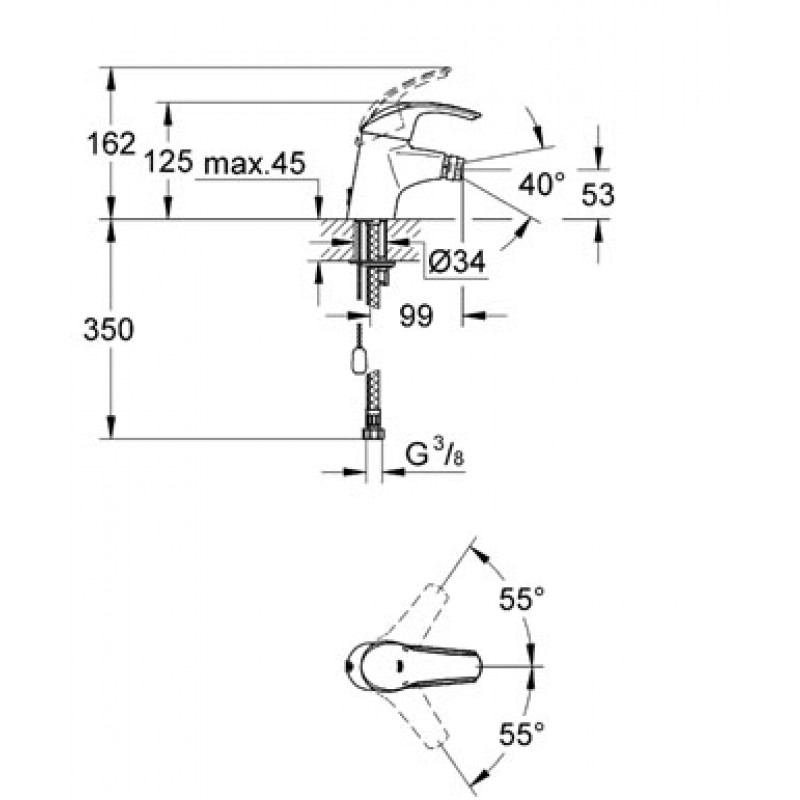 GROHE Eurosmart páková bidetová batéria, DN 15, chróm 32927001- Jednootvorová montáž