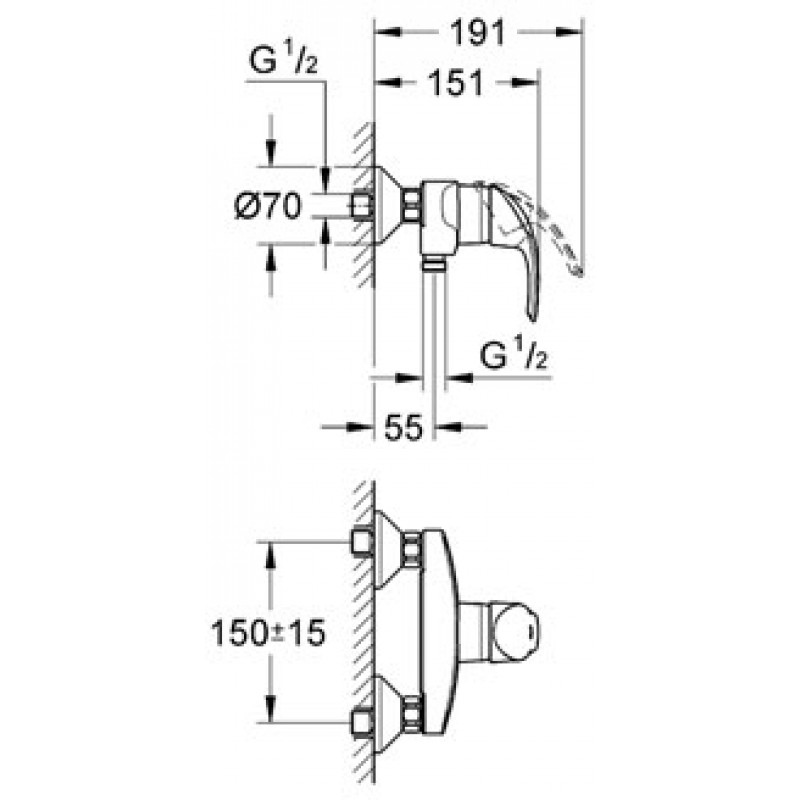 GROHE Eurosmart páková sprchová batéria, DN 15, chróm 33555001- Nástenná montáž
