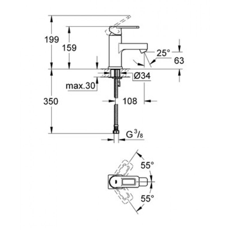 GROHE Quadra páková umývadlová batéria, DN 15, chróm 23105000- Jednootvorová montáž