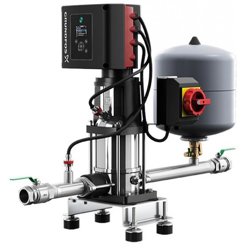 Kompletné posilňovacia stanica pre udržiavanie konštantného tlaku, obsahuje čerpadlo CRIE, membránovú nádobu s prietokovým ventilom, sadu snímačov tlaku a zberné potrubie s uzatváracími armatúrami a spätnou klapkou
