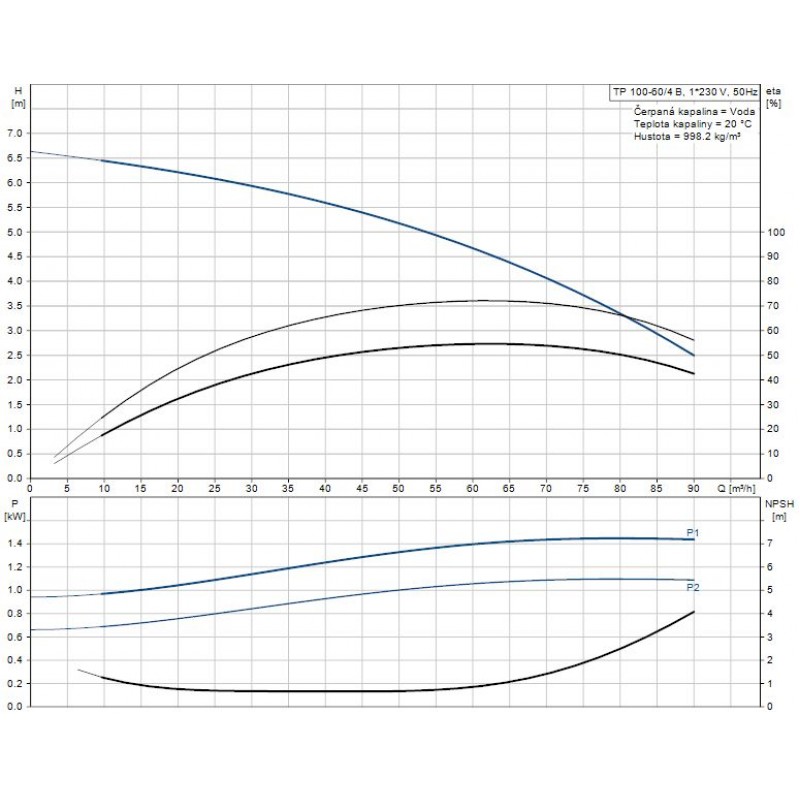Údaje čerpadla pre dané otáčky: 1430 ot / min