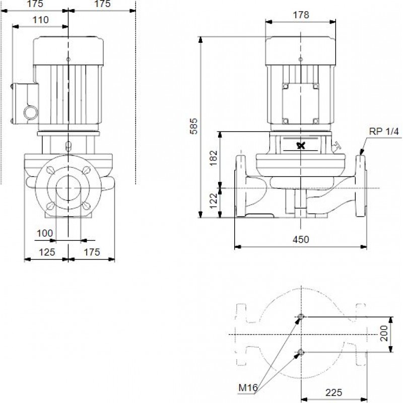Grundfos In-Line čerpadlo TP 100-60/4 B, PN 6, 1.1kW, 3 x 220-240 DV 450mm 96404944