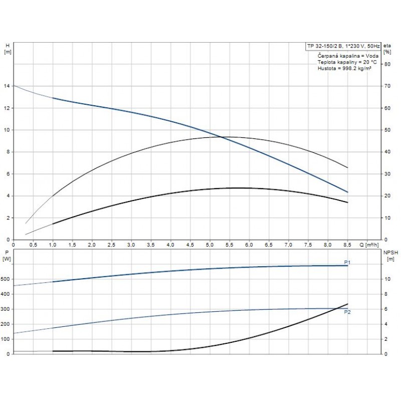 Údaje čerpadla pre dané otáčky: 2865 ot / min